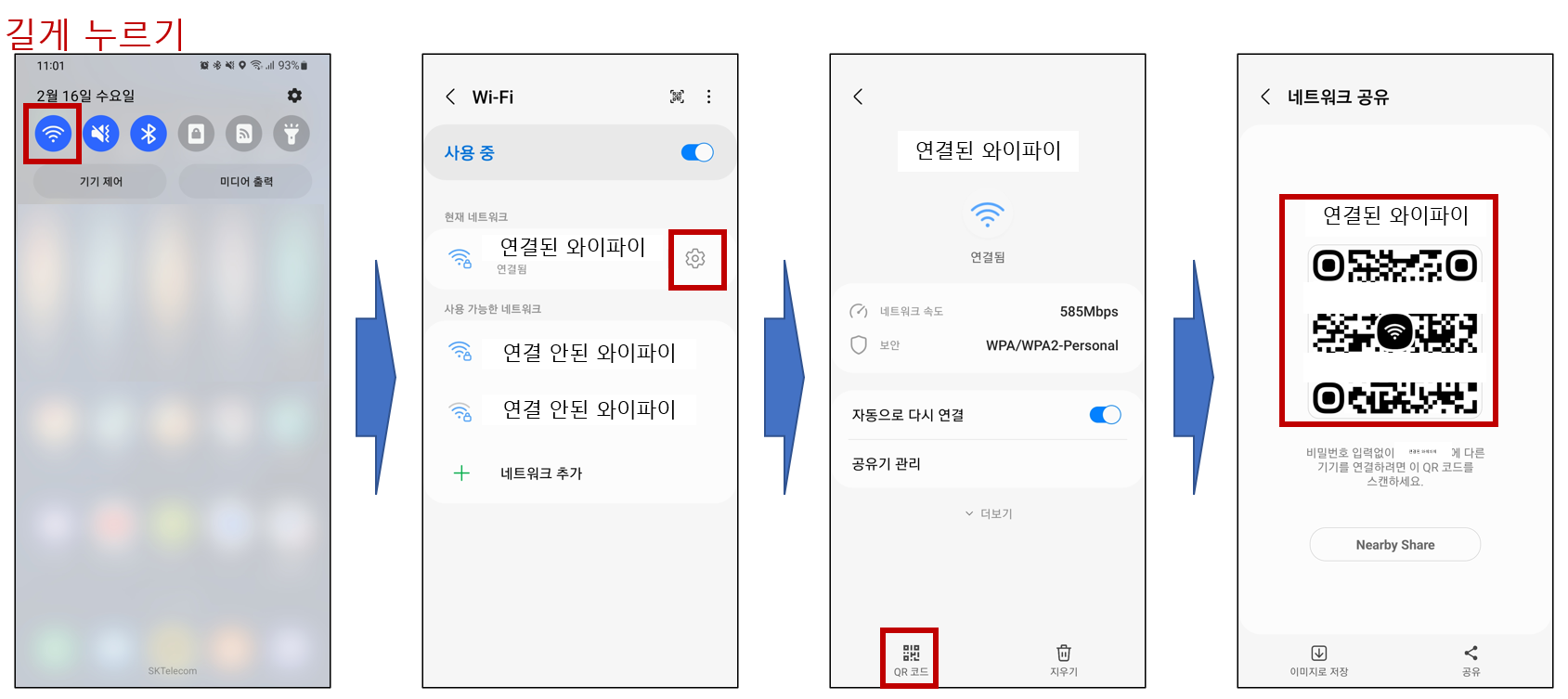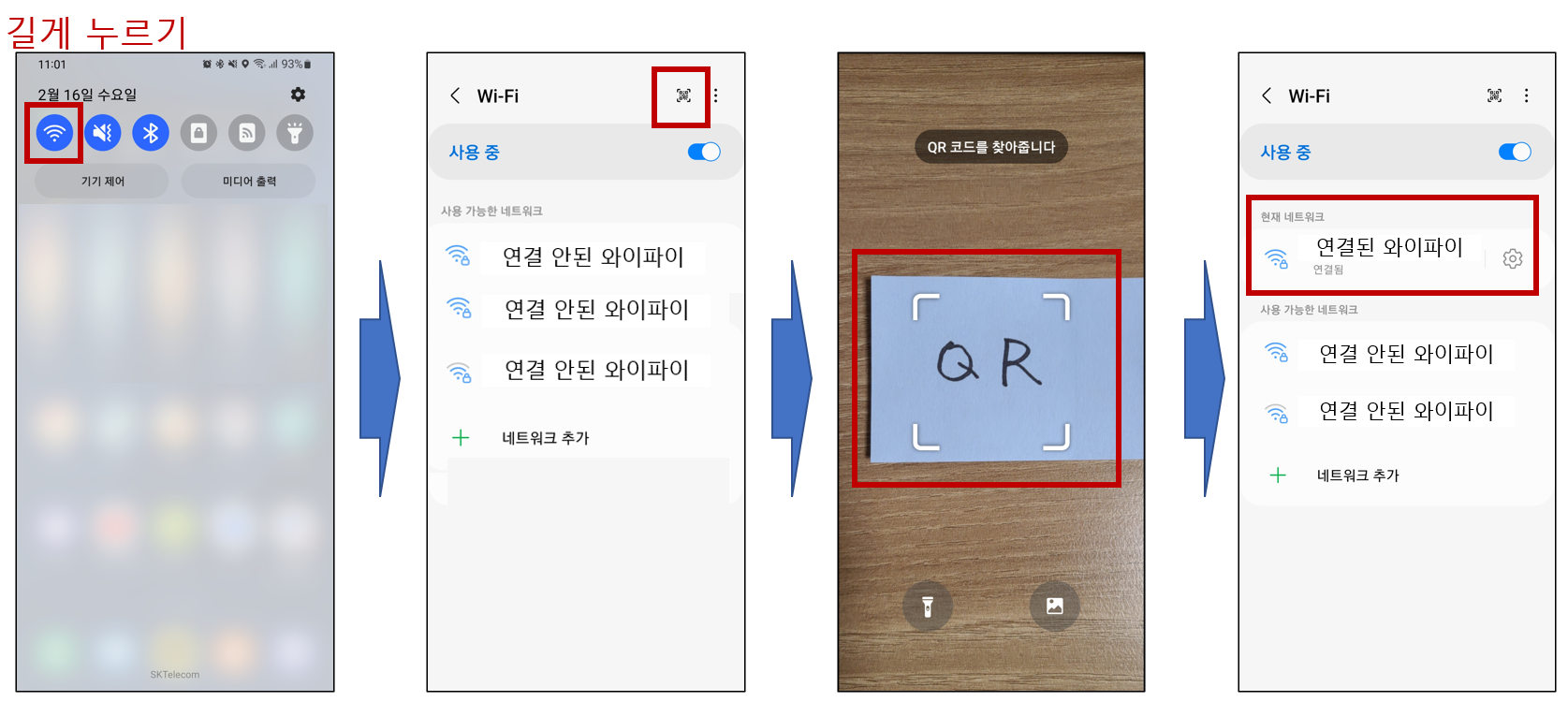 와이파이가 연결되어 있는 분 핸드폰으로 순서대로 따라 하시면 됩니다.